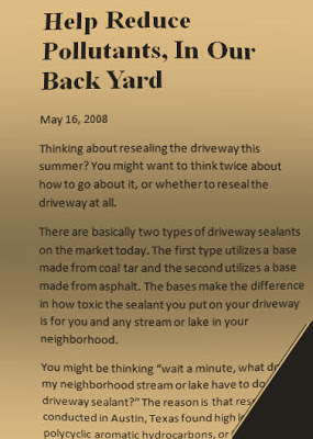 I would hope that the DEP would take their own advice: help reduce pollutants and support the ban of coal tar sealants in the the State of Maine.