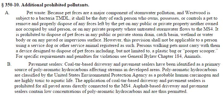 The Commonwealth of Massachusetts joins eight other states and districts with an outright ban of coal tar pavement sealers by a community within its borders! On May 4, 2015 the Town of Westwood, with an appropriate moniker “Committed to Service,” passed the Commonwealth’s first ban of this product.