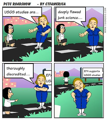 - no industry studies done in the last 20 years showing the safety of their product. They complain that they need more info from the USGS in order to replicate their work. But anyone with high school chemistry knowledge could test and report the chemical levels and mutagenicity of the coal tar sealers. Has this been done? No.